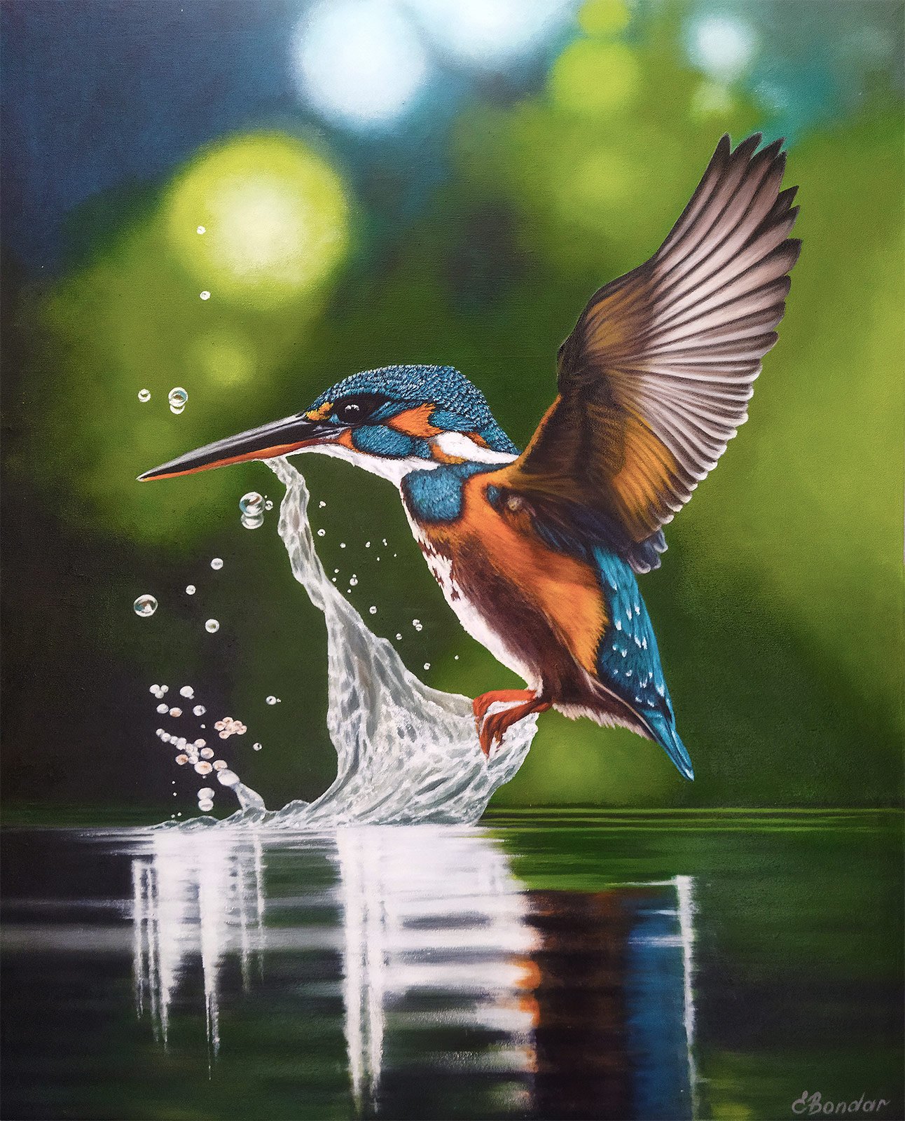 I have meticulously rendered every iridescent feather and glistening droplet, set against a dreamlike, luminous background that makes the bird practically leap off the canvas. Itβs vibrant, itβs dramatic, and itβs significantly more successful at catching its lunch than I usually am.